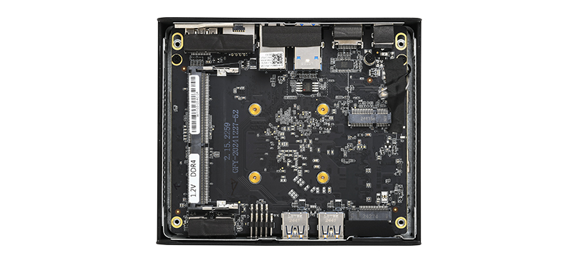 エントリークラスのインテル プロセッサー N100を採用。約0.6リットルの超小型設計ながら、4K×2画面への出力をサポートし、USB×6を備えるなど、優れたコストパフォーマンスを実現しています。ファンレス仕様で動作音もしないため、場所を選ばずに設置可能。デジタルサイネージ、キオスク端末、エッジコンピューティング、ビデオ会議など、多様なニーズに応えます。